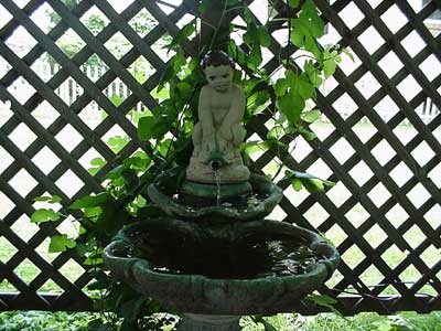 Small fountains can add a European flavor to your yard. These backyard decorations can also add that little bit of class that helps make the sale.